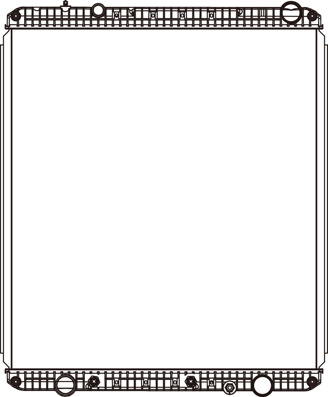 Core Size: 1070*958*58 Inlet Tank: 85*996 Outlet Tank: 85*996 Inlet Pipe: 63 Outlet Pipe: 63 Oil Cooler: 305 Composition: Plastic Alloy