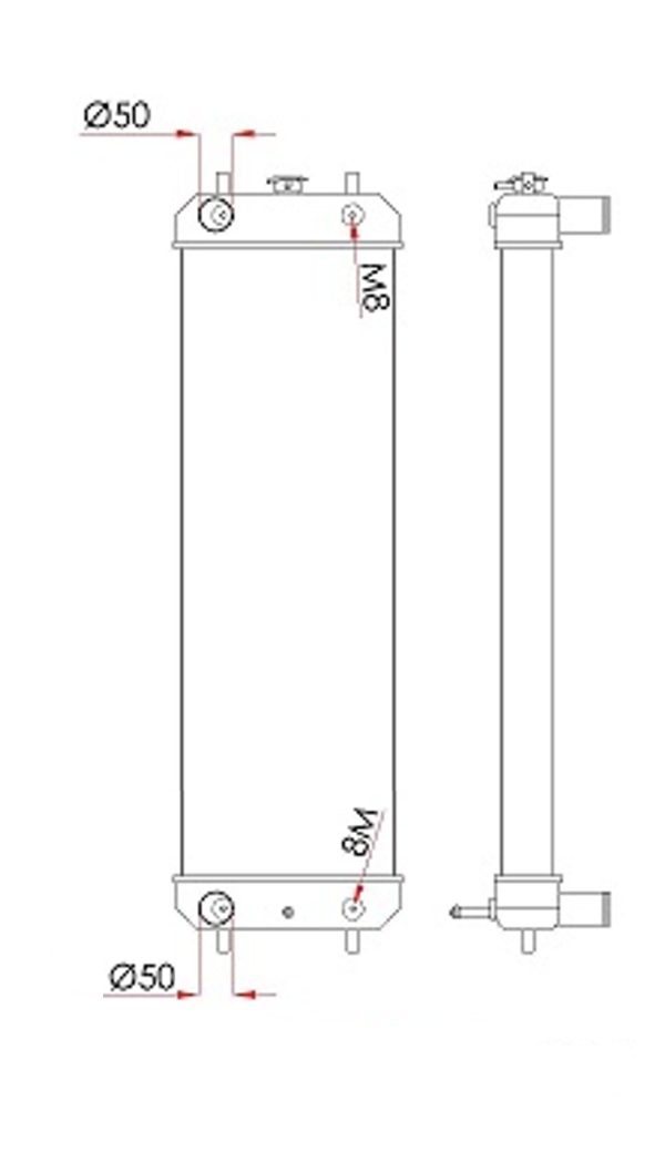 Core Size: 920*308*76 Inlet Tank: 99*334 Outlet Tank: 99*334 Inlet Pipe: 50 Outlet Pipe: 50 Oil Cooler: M/T Composition: All Alloy