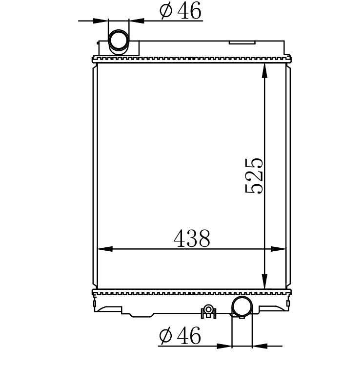Core Size: 525*438*48 Inlet Tank: 69*460 Outlet Tank: 69*460 Inlet Pipe: 46 Outlet Pipe: 46 Oil Cooler: M/T Composition: Plastic Alloy
